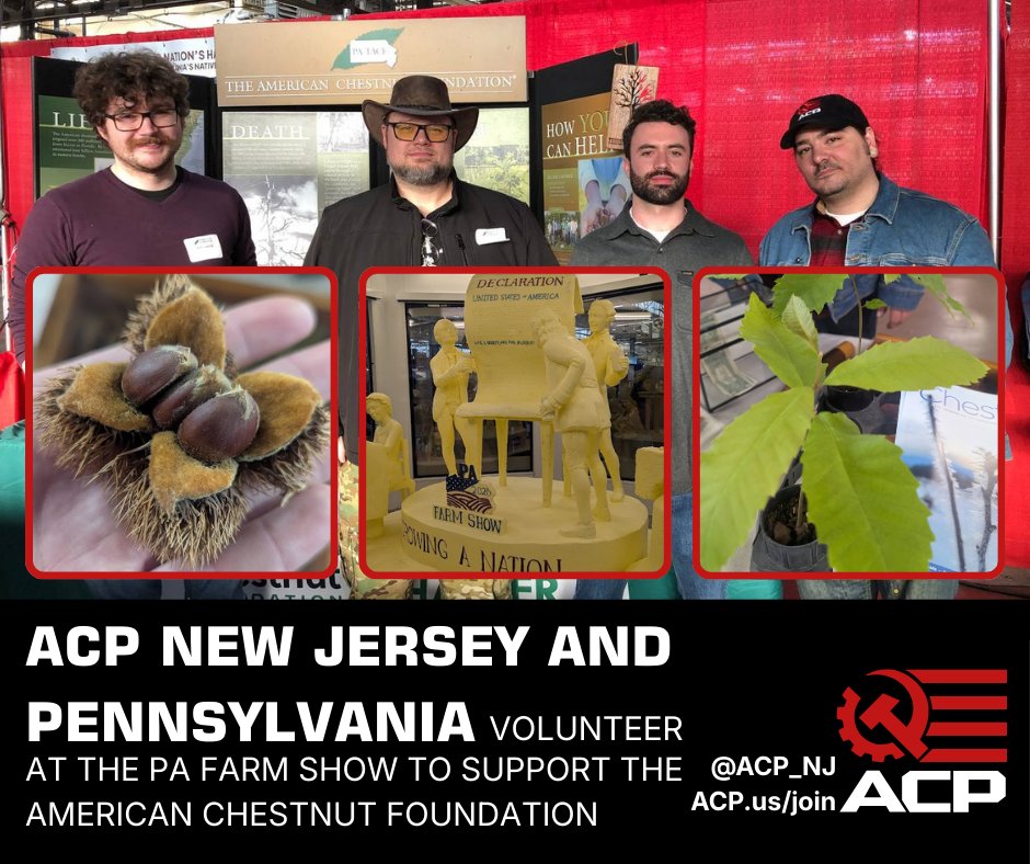 On January 10 and 17, ACP NJ and PA members volunteered at the American Chestnut Foundation's booth at the PA Farm Show. We learned and taught the public about this important tree's life, death, and rebirth. Cadre also wandered the show floor to learn about agriculture in PA.